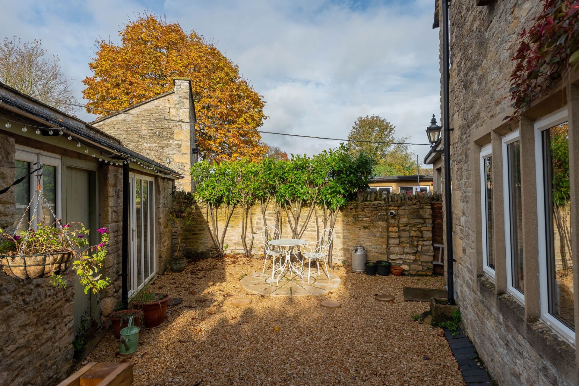 Outside there is a private courtyard garden ideal for outdoor dining. An outbuilding with power and water. And driveway parking for a small car.