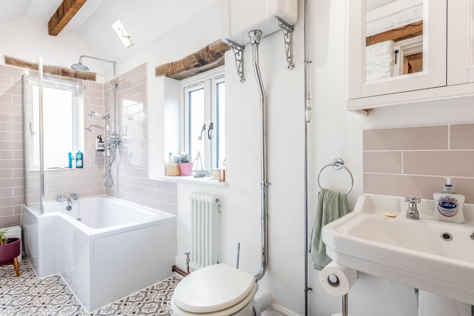 The accommodation includes a light dual-aspect sitting room, separate dining room, newly fitted cottage-style kitchen, utility and shower room. Upstairs are three double bedrooms and a family bathroom.