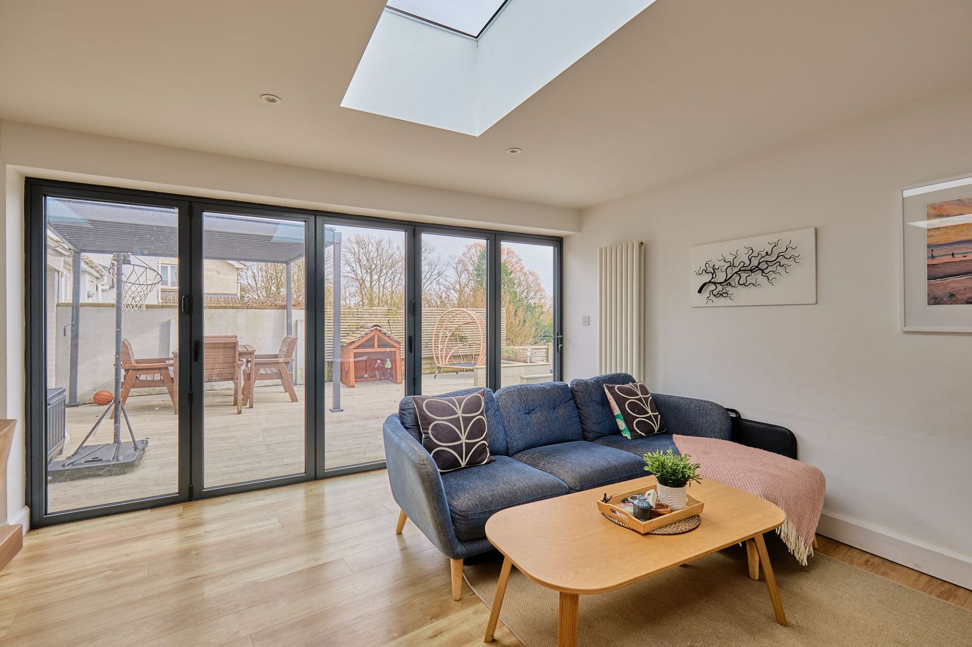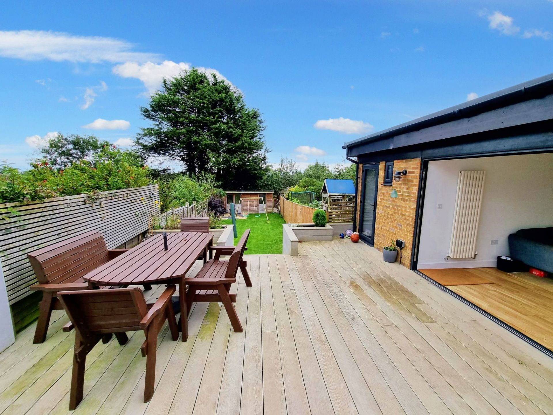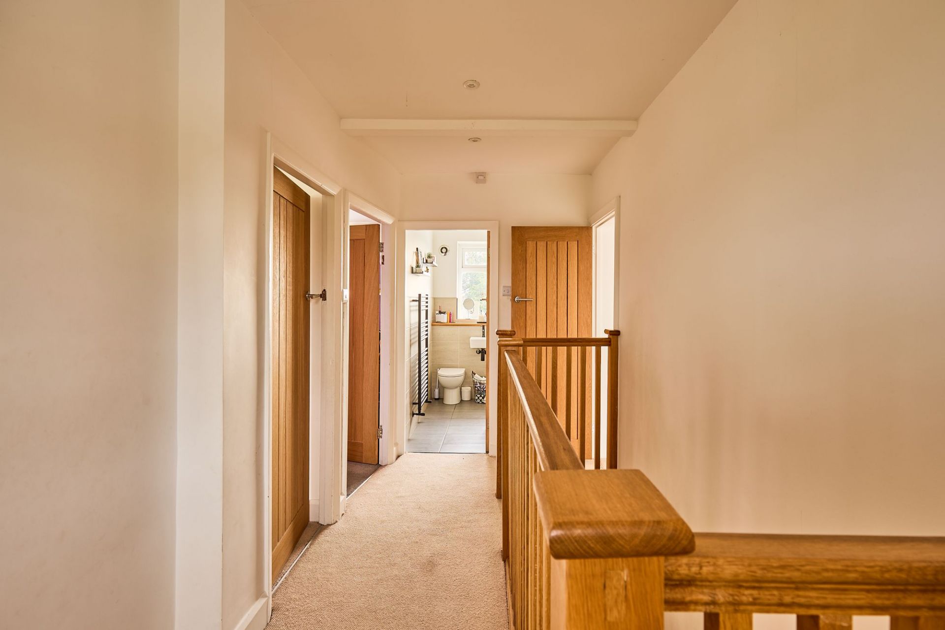 Upstairs, there are four bedrooms, including a main bedroom with en-suite, along with a family bathroom, making the house well suited to family living or those needing flexible space.