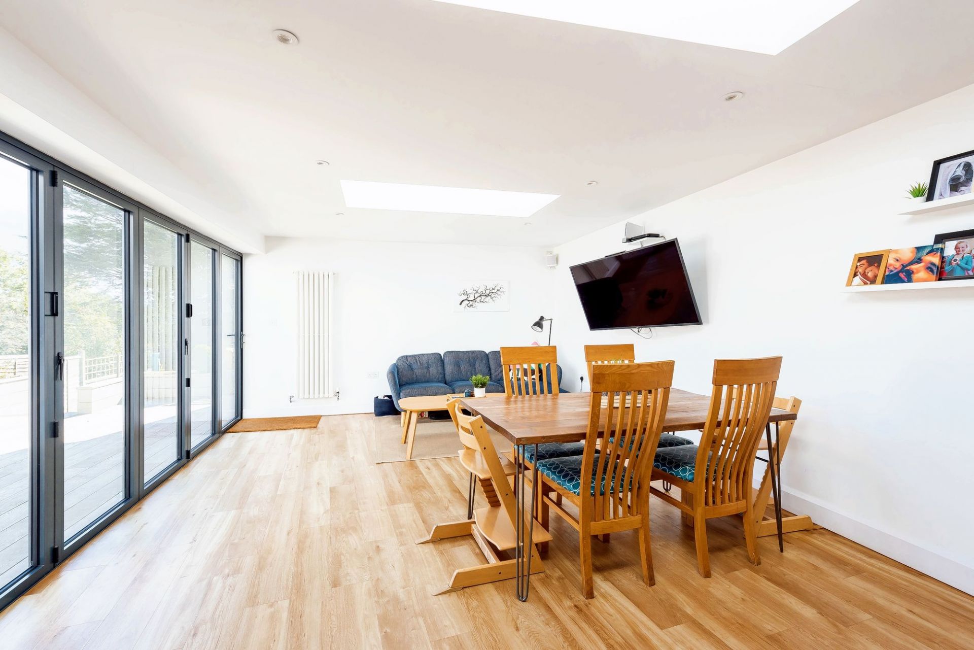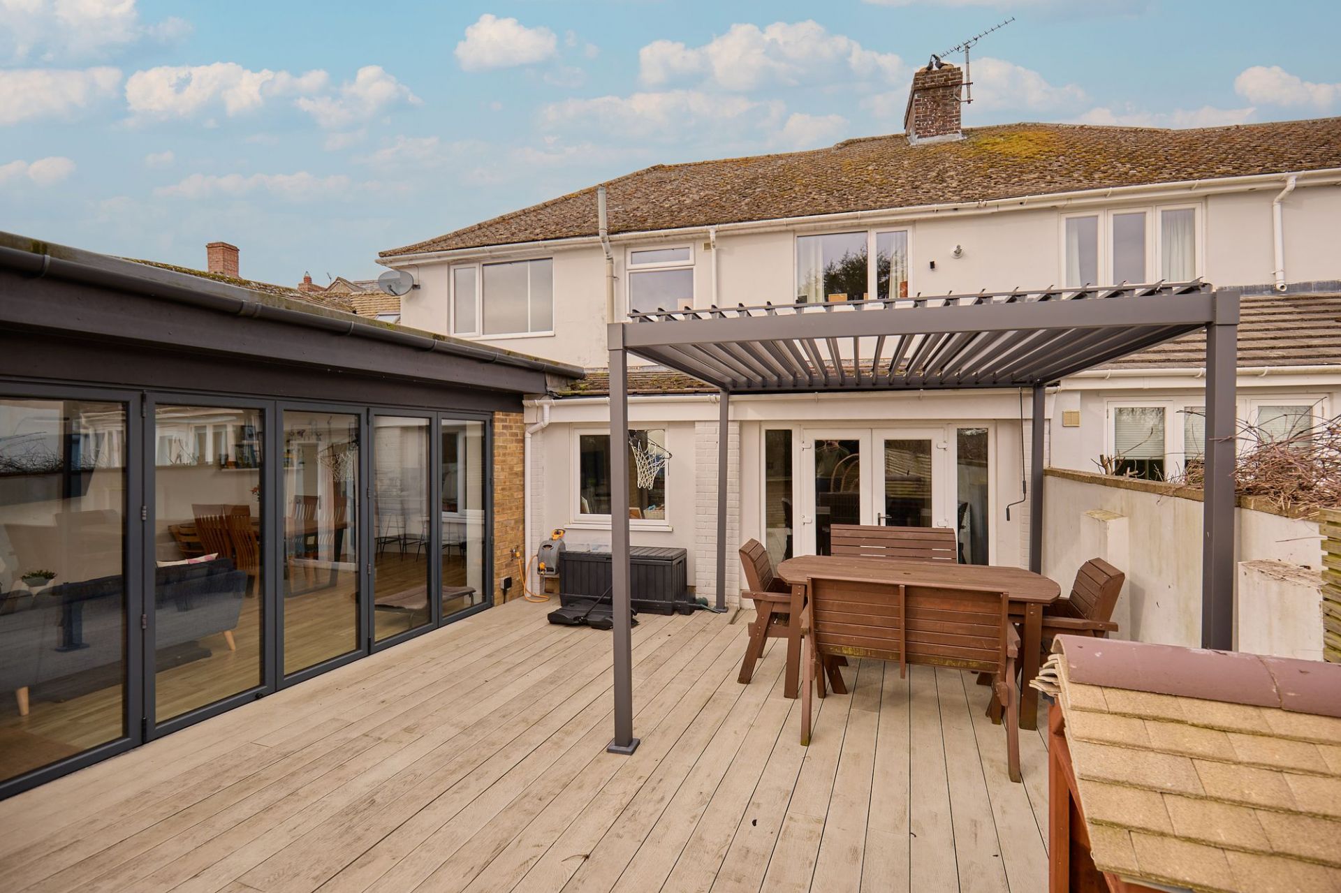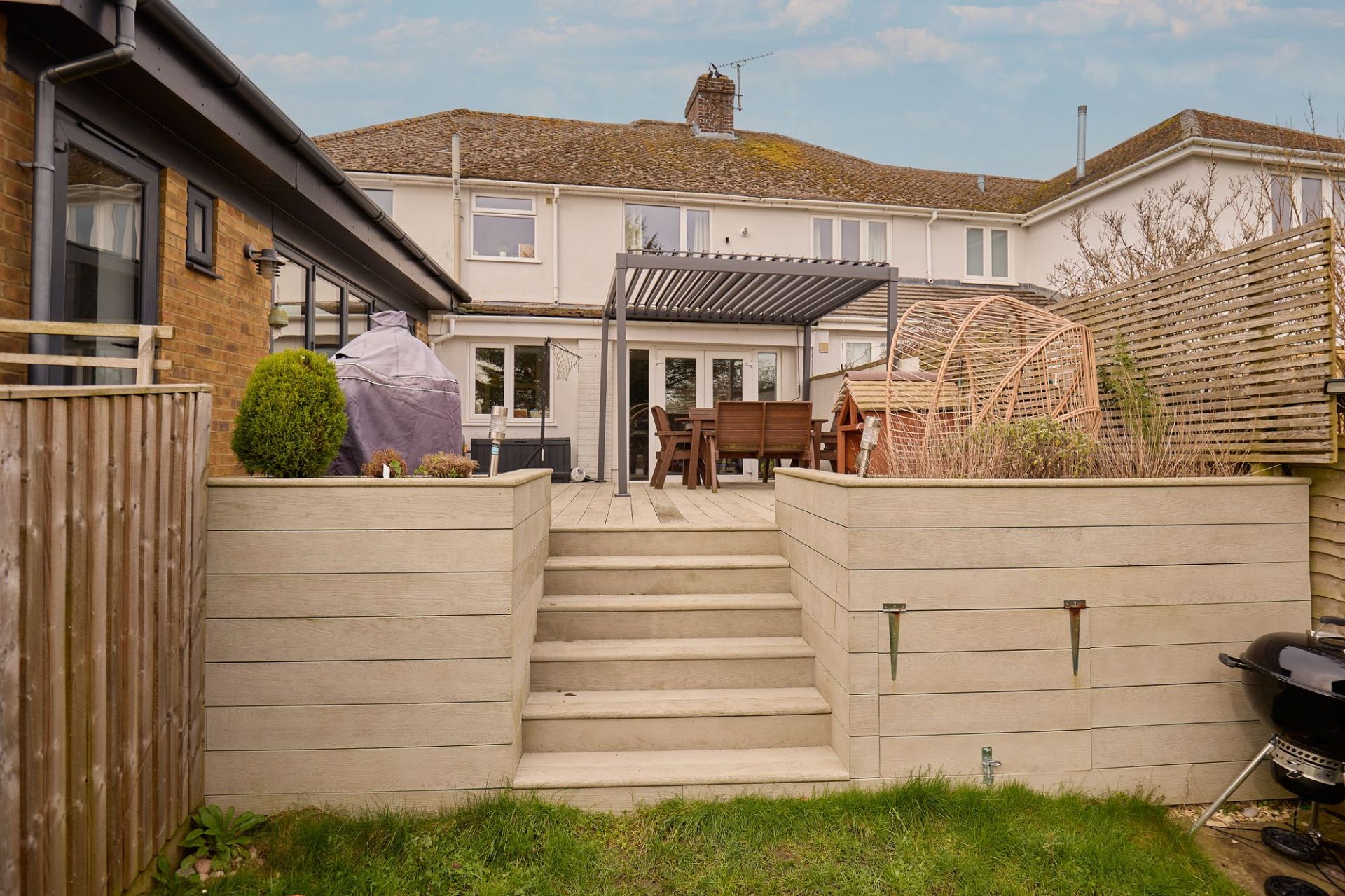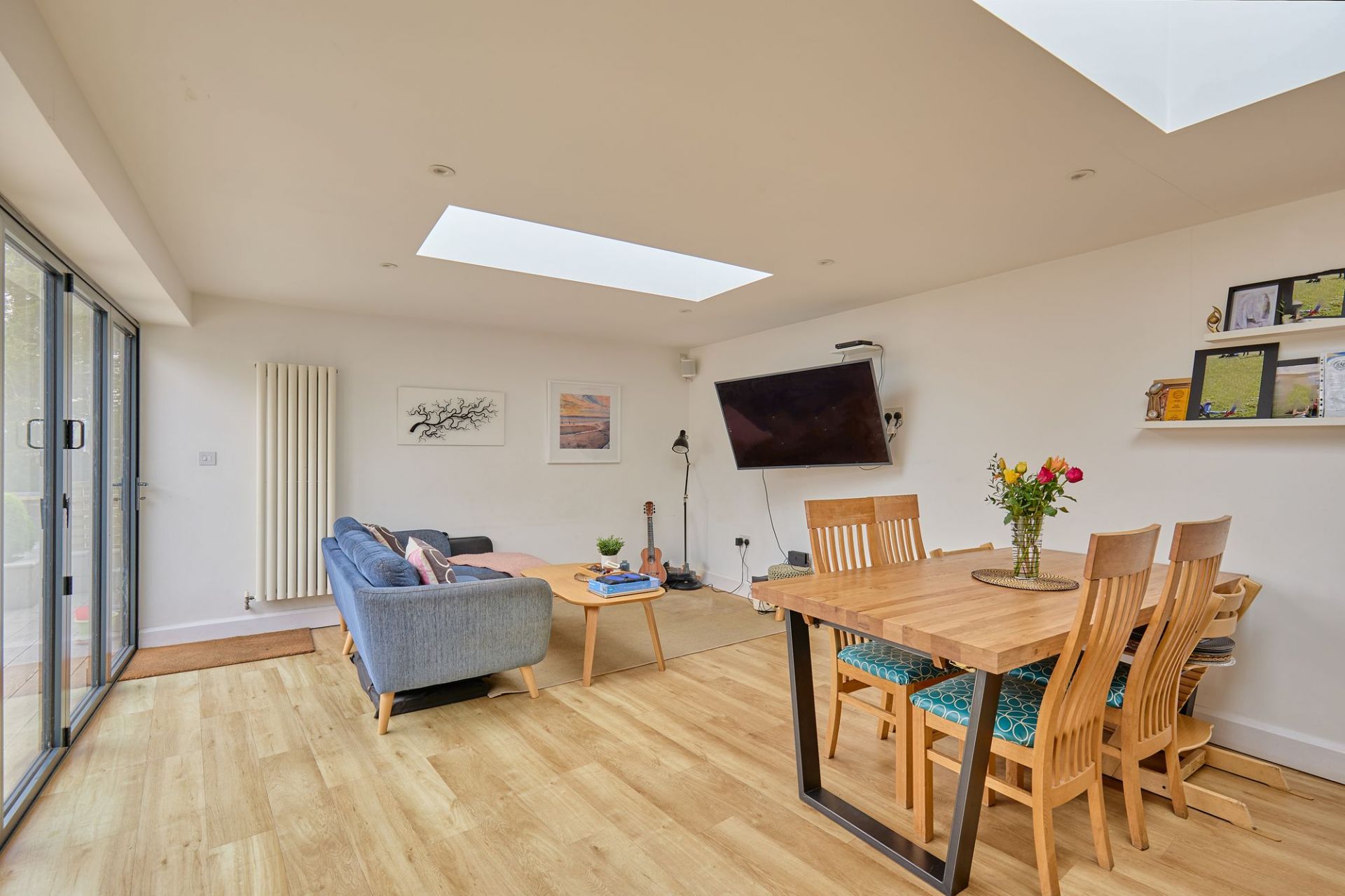 Upstairs, there are four bedrooms, including a main bedroom with en-suite, along with a family bathroom, making the house well suited to family living or those needing flexible space.
