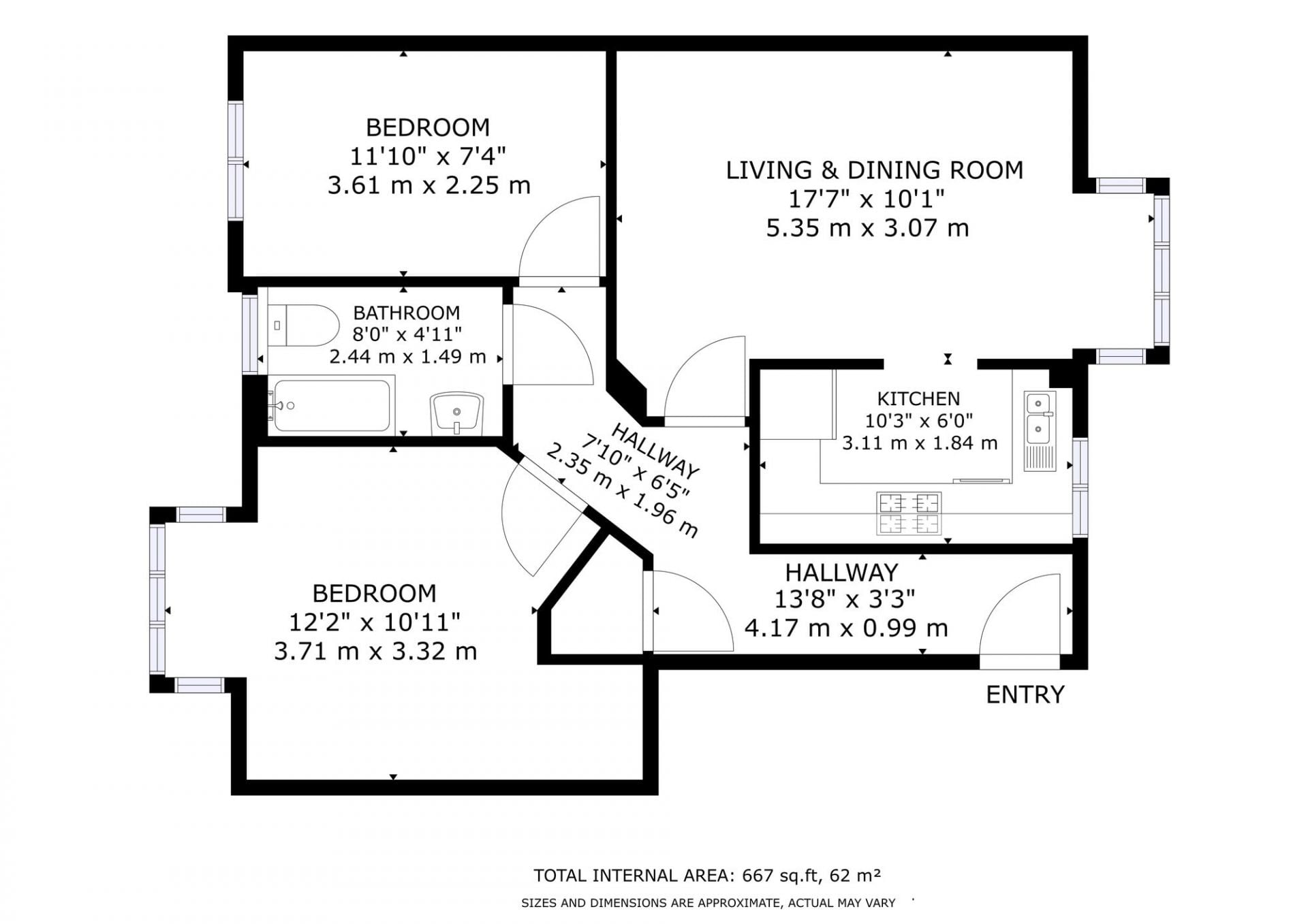 A two bedroom first floor apartment offering bright and spacious accommodation throughout. The property comprises two generous bedrooms, a fitted kitchen opening into a good sized living room with a bay window, and one family bathroom. Further benefits include one allocated parking space.